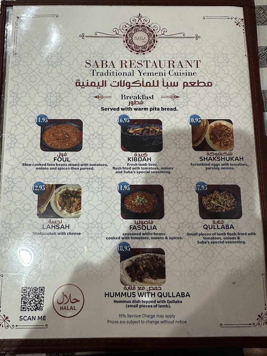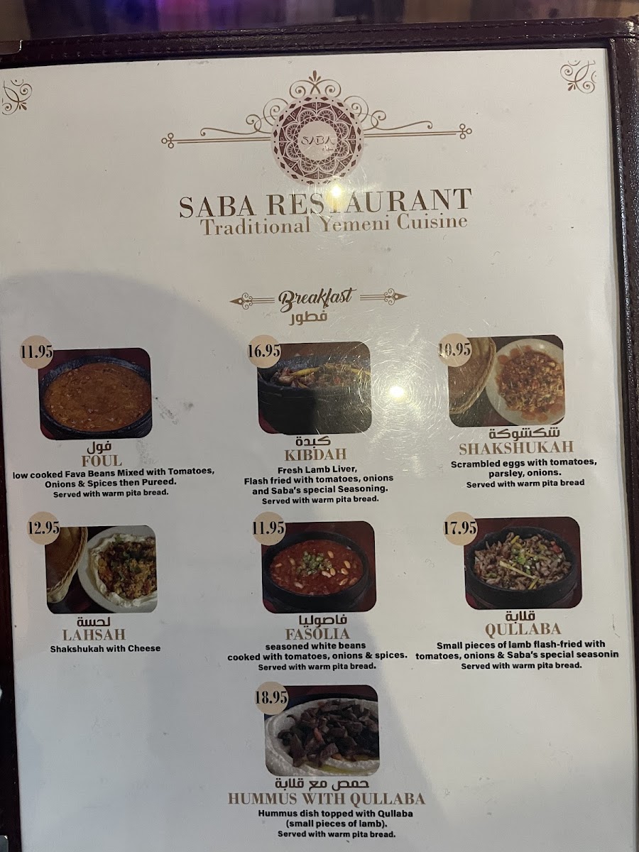 Saba Restaurant Menu
